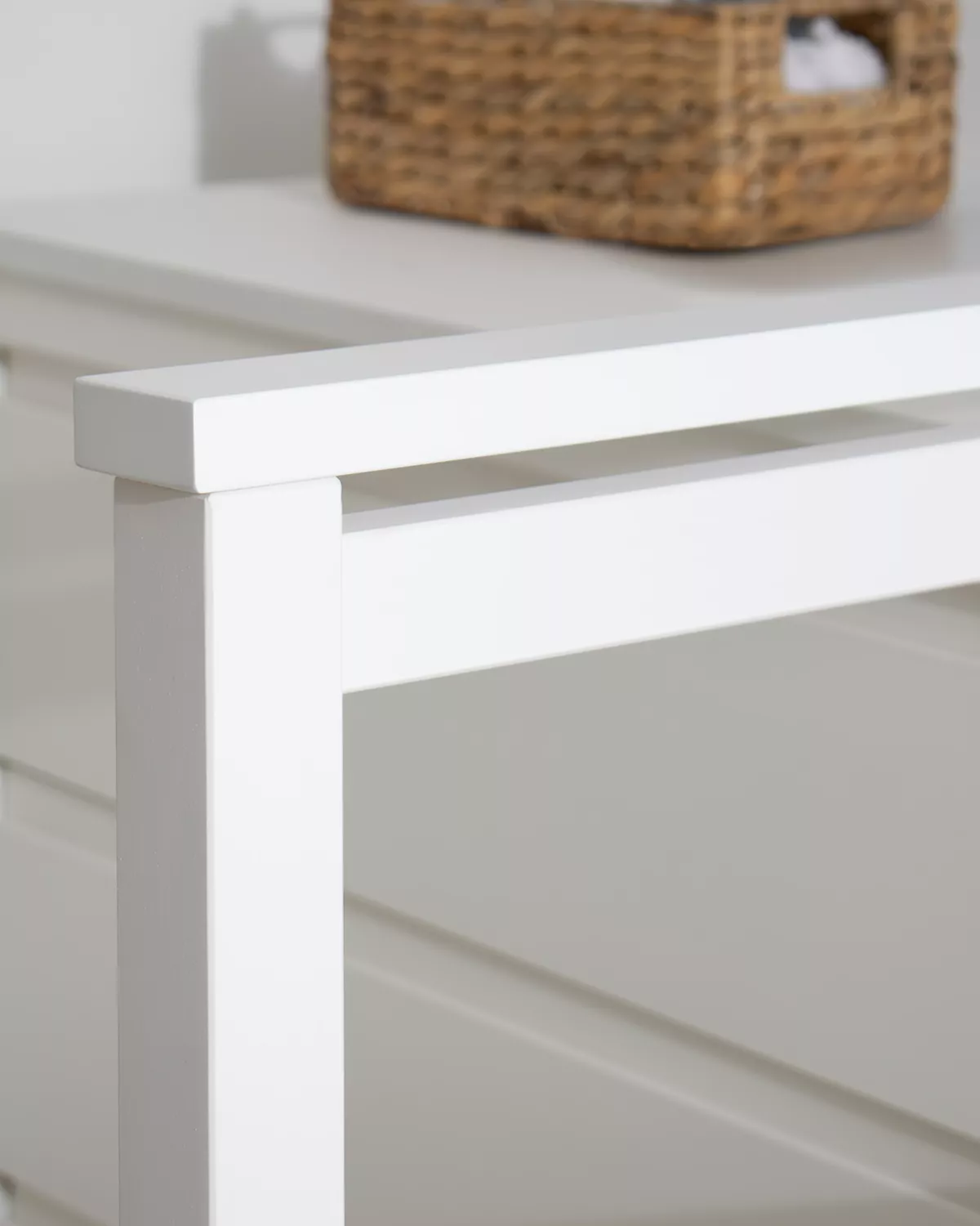 Finitura laccata bianca: La nostra finitura satinata bianca è non solo estetica e facile da abbinare a diversi stili di arredamento, ma offre anche una protezione extra, rendendo i mobili più resistenti e adatti agli imprevisti della vita quotidiana.
