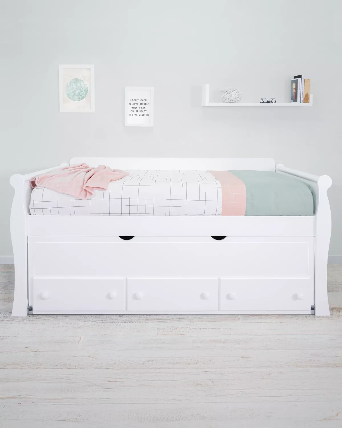 Doppia funzione – Letto e contenitore: non solo dormirai sonni tranquilli, ma avrai anche tre ampi cassetti per riporre di tutto, dai giocattoli ai vestiti. Addio al disordine !