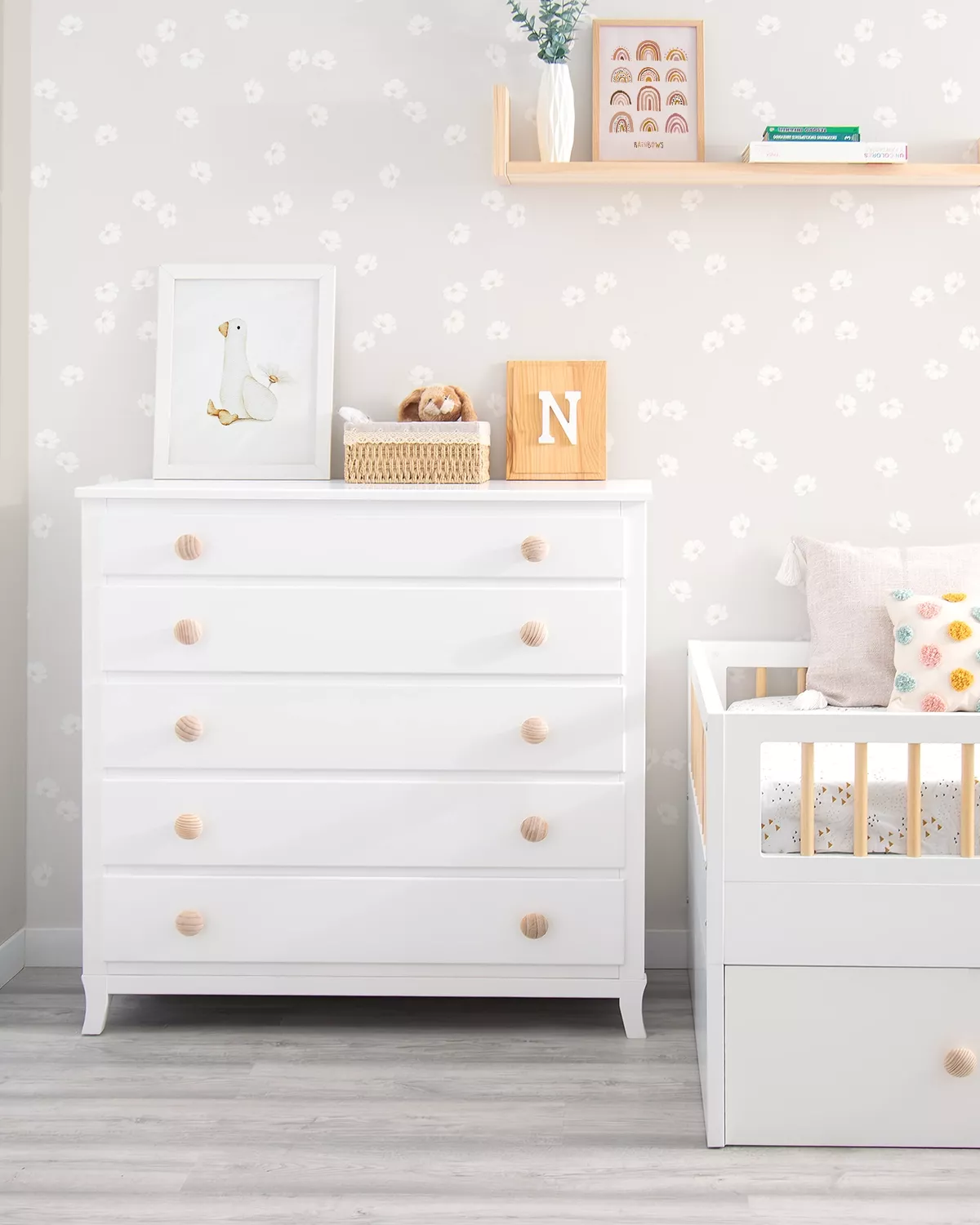 Cassettiera 5 cassetti è un mobile imprescindibile per la cameretta dei bambini, ognitanto ci sembra che non sarà mai possibile finire di ordinare tutto ciò che abbiamo in cameretta. Perciò un mobile come questo ci può veramente risolvere la vita, i 5 cassetti di questa comò sono ampi, spaziosi e perfetti per ordinare tutta la camera dei bambini. In più, il disegno di questo mobile lo fa allungabile nel tempo in modo di farlo crescere insieme ai bambini.