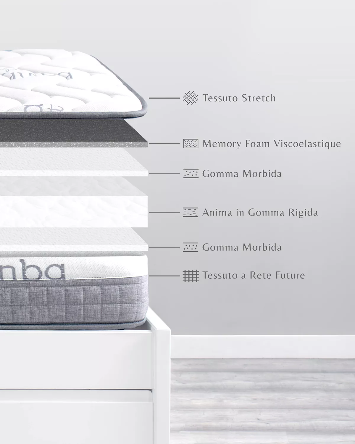 Composto da tessuti Strech e 3D altamente traspiranti, insieme a 2 cm di viscoelastica Memory Foam, offre un'esperienza di riposo unica.