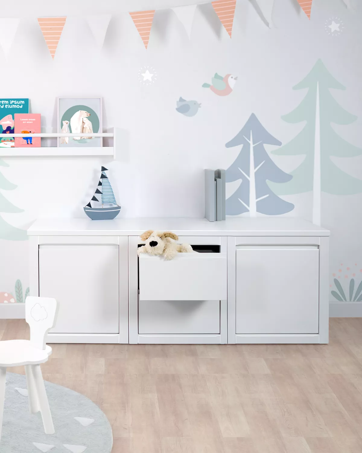 Con un disegno bello e originale, la cassettiera con seduta Triple si abbinerà perfettamente con tutti gli altri mobili della cameretta. Questo mobile può avere diversi cassetti molto capienti che serviranno per riordinare tutta la stanza. Inoltre, ha l'altezza giusta per poterci sedere sopra.