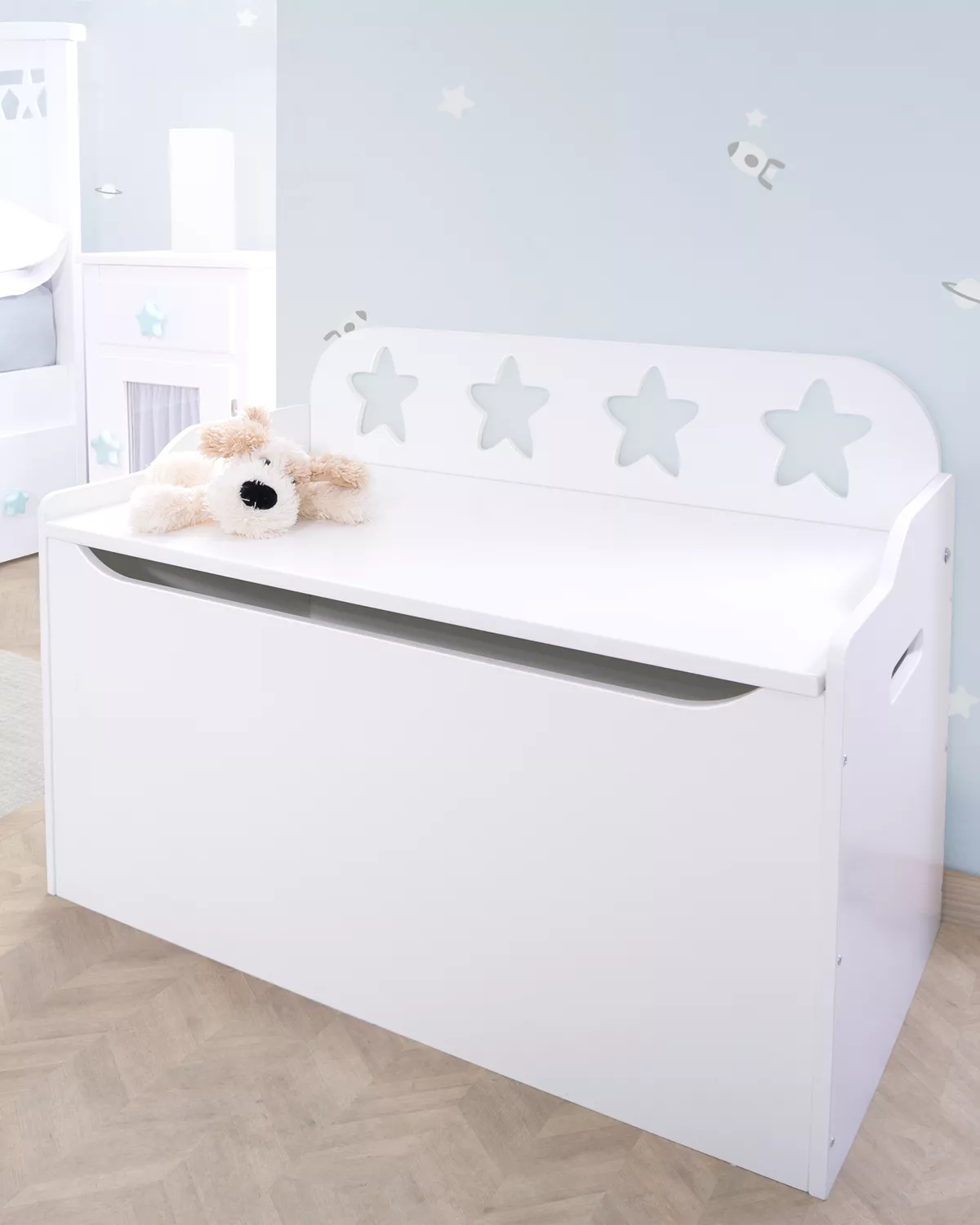 Contenitore portagiochi Stelle questo contenitore portagiochi è carinissimo, perfetto come complemento di arredo di una cameretta, ideale per quelli che hanno bisogno di sistemare facilmente tutti i giochi che sono spersi. Oltre la sua funzionalità, è anche un oggetto di decorazione molto bello e elegante. Fabbricato in legno di pino e MDF, materiale forte, rigido e di lunga durata. Un mobile da usufruire per tanti anni!