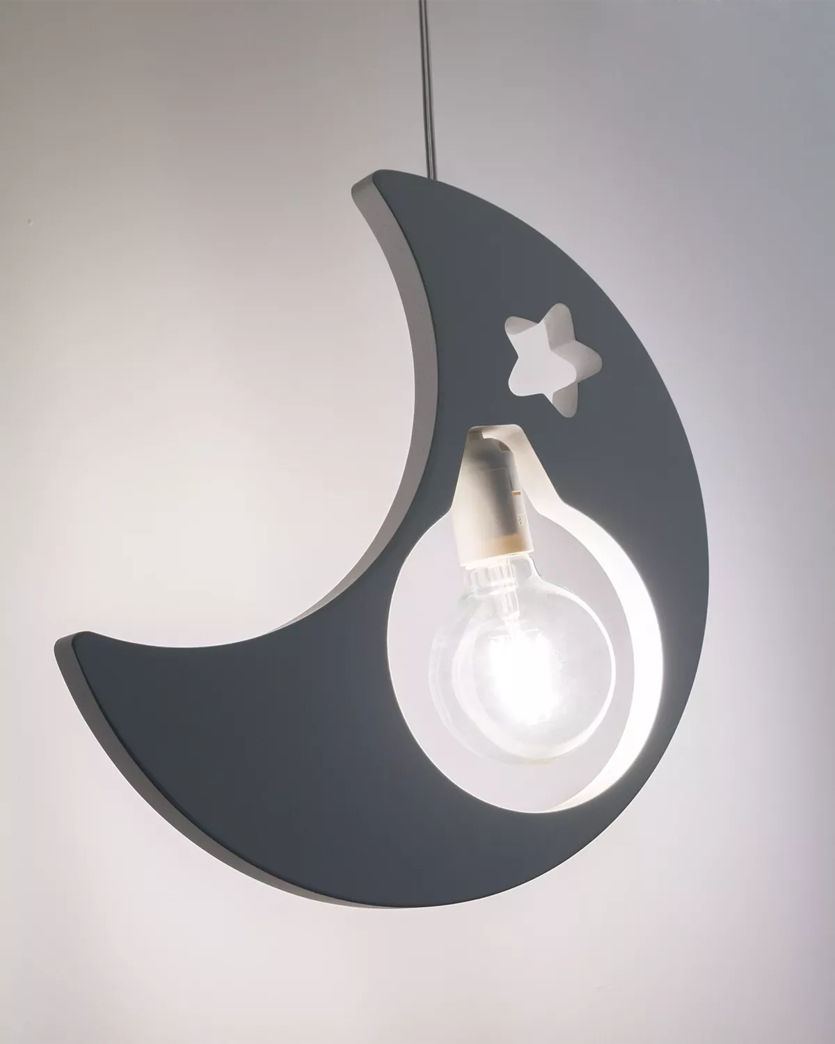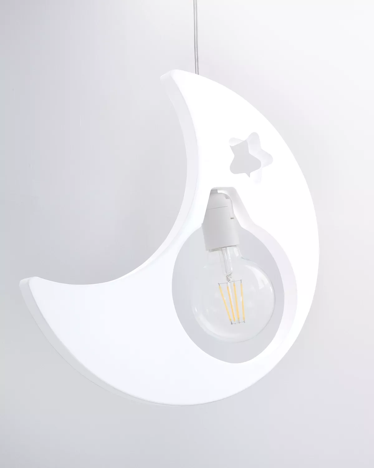 Lampada divertente e originale per illuminare la cameretta di un neonato o di un bambino.Grazie al suo design unico e originale a forma di mezzaluna. Questa lampada a sospensione Luna ti aiuterà a decorare la stanza con gusto, creando un'atmosfera calda e accogliente. Disponibile in diversi colori, la lampada a sospensione rosa decorerà la stanza di tua figlia! In bianco o menta per una stanza mista. Il tuo bambino lo adorerà sicuramente !