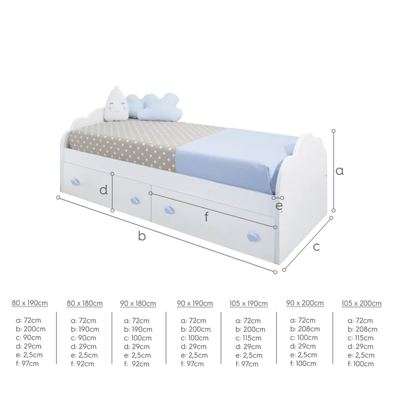 Letto con cassetti Nuvola: Questo bellissimo modello, è uno dei nostri più popolari, sicuramente vi piacerà molto.Fabbricato in legno di pino e MDF, materiale di gran qualità, resistenza e durabilità, essendo sicuramente una delle migliori opzioni per quelli che vogliano un mobile per tanti anni. I cassetti che ci sono sotto servono per massimizzare lo spazio, e fare più facile riassettare tutta la camera. Ideale per camere con spazi ridotti o che hanno bisogno di tenerci dentro tante cose.