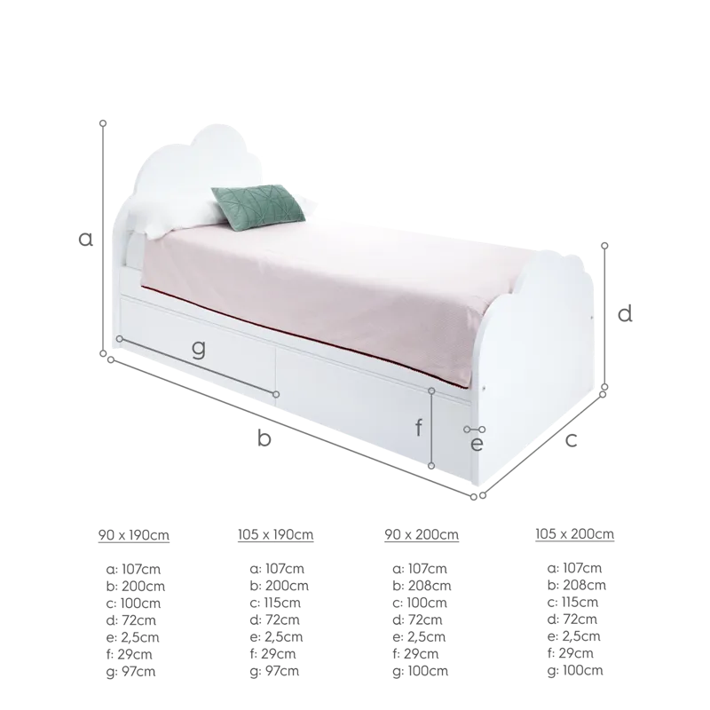 Letto con cassetti nuvola per bambini- Consegna gratuita