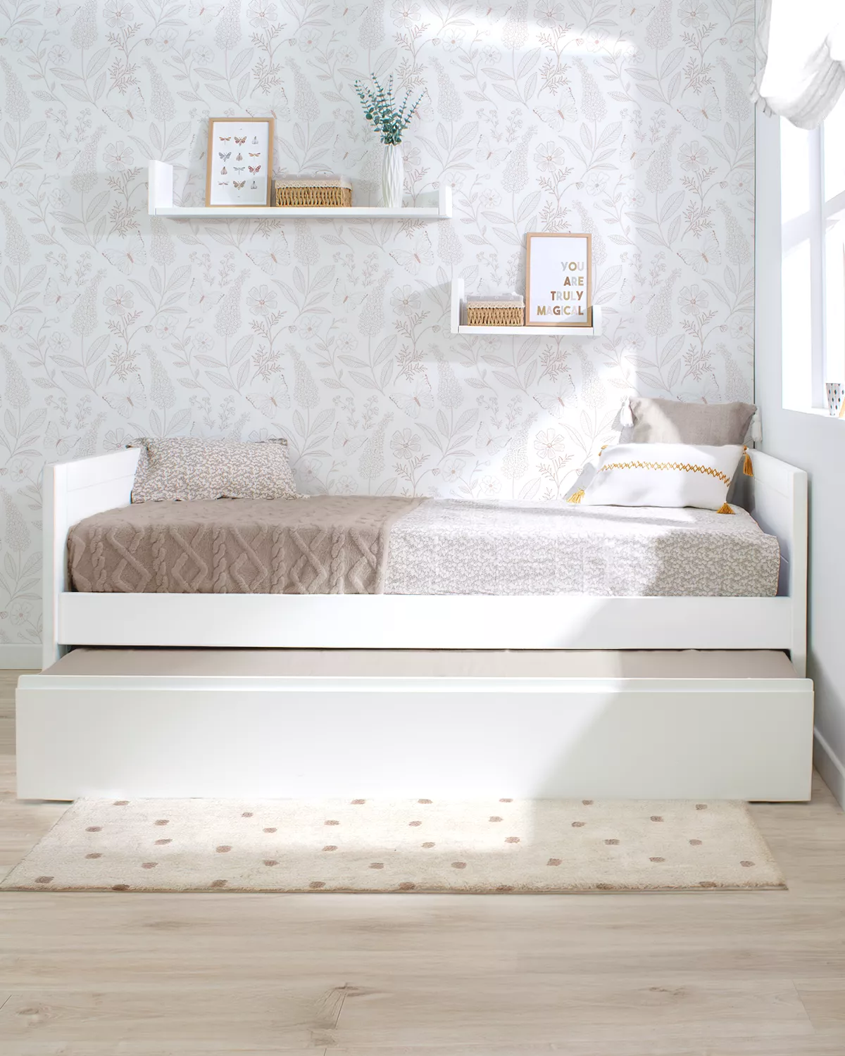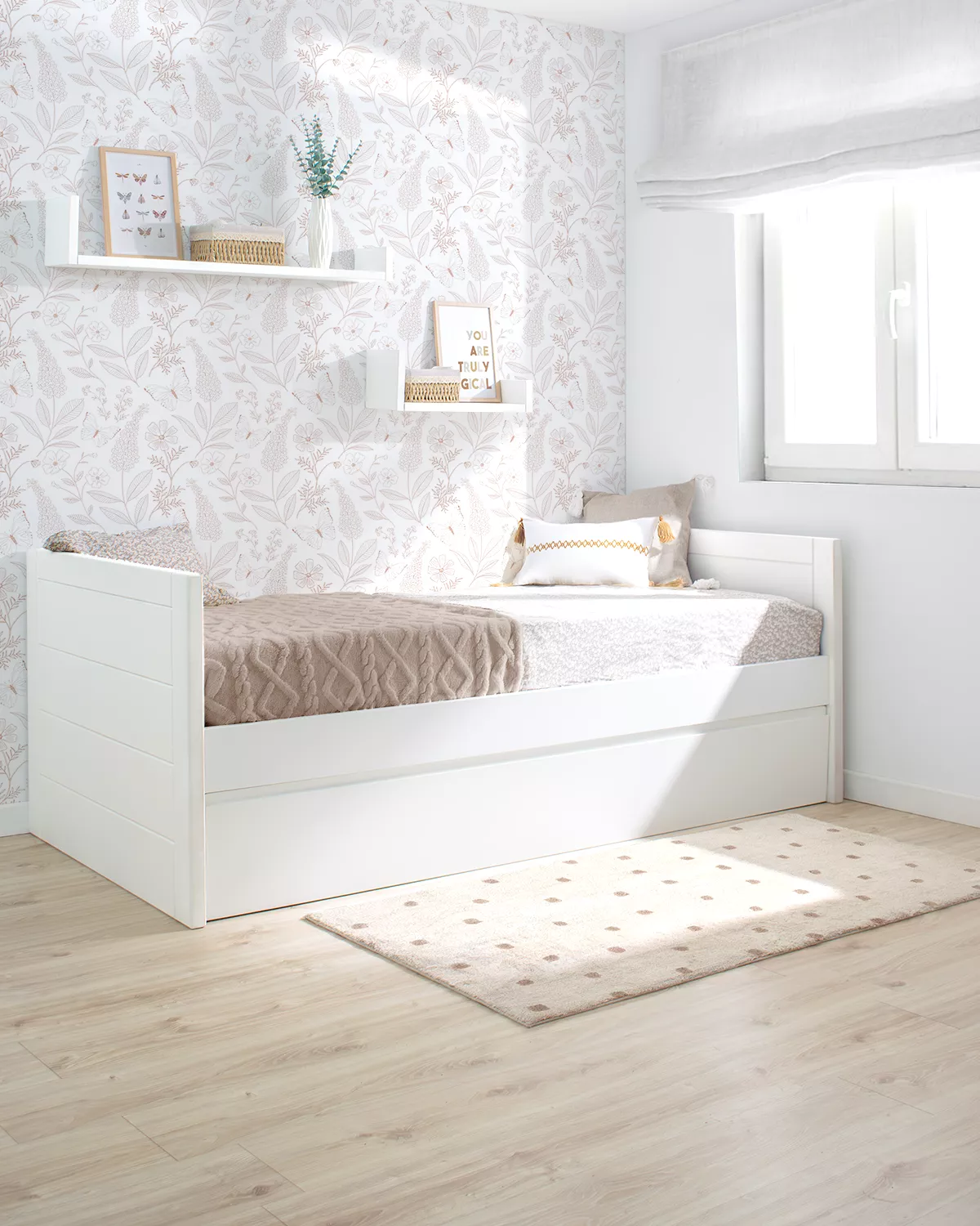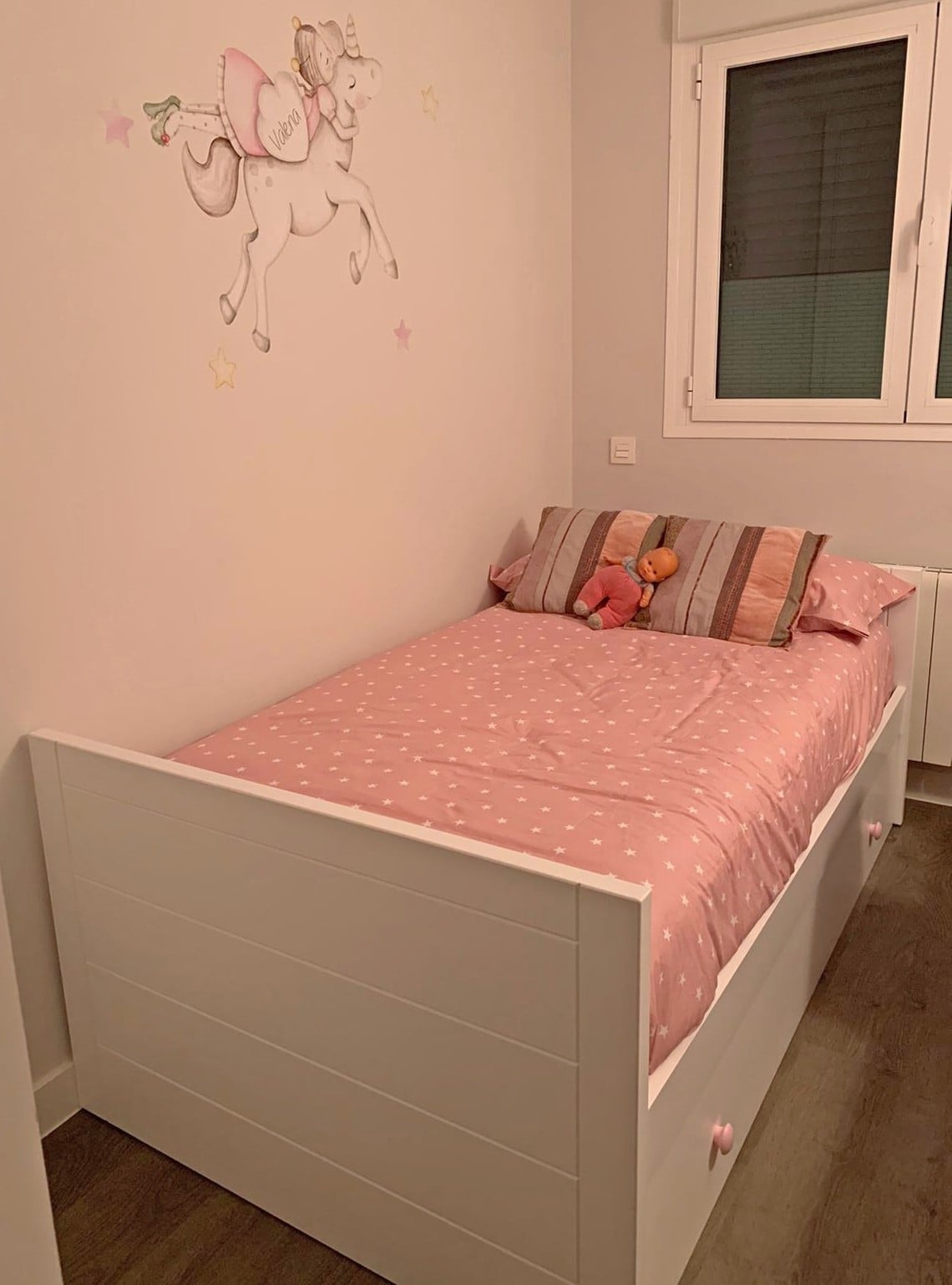 Letto per bambini estraibile Lineare è un bel lettino con un disegno semplice, armonioso e minimalista, per quelli che cercono eleganza e essenzialità in uno solo mobile. Fabbricato in legno di pino e DM, materiale di gran qualità, resistenza e durabilità, essendo sicuramente una delle migliori opizioni per quelli che vogliano un mobile per tanti anni. Inoltre alla bellezza e la decorazione originale e divertita questo letto è anche molto funzionale perchè il letto estraibile è molto facile da utilizzare scorrendo soavente sulla terra; i suoi piedi pieghevoli cadono gentilmente appena si solleva un pò il peso del letto in modo che non è necessario nessun movimento forzoso o difficile.