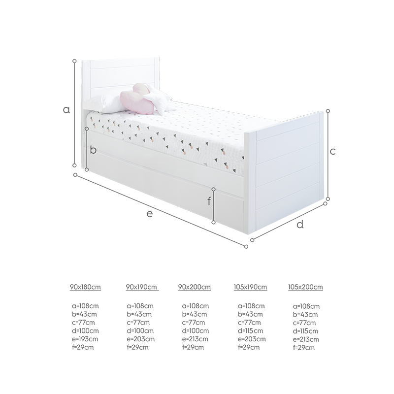 - Misura letto: 213 cm x 100 cm x 108 cm