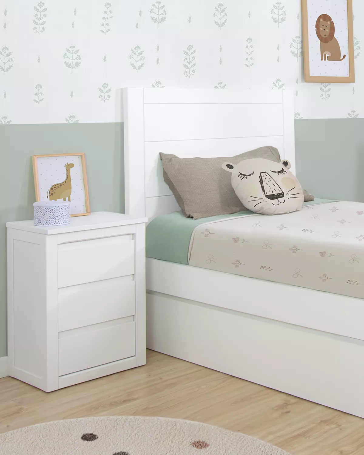 Verniciatura in bianco: Dovuto alla sua qualità ci dà una sensazione di un tatto morbido poichè possiede della consistenza dolce e setosa. I bambini spendono molto tempo nella loro camera per cui crediamo che è molto importante scegliere il modelo che si adatta di piè al ritmo della loro vita. Noi abbiamo fatto dei nostri mobili il risultato di un gran lavoro di squadra, sempre a pensare ai nostre clienti che cercano il migliore in qualità, comfort e disegno