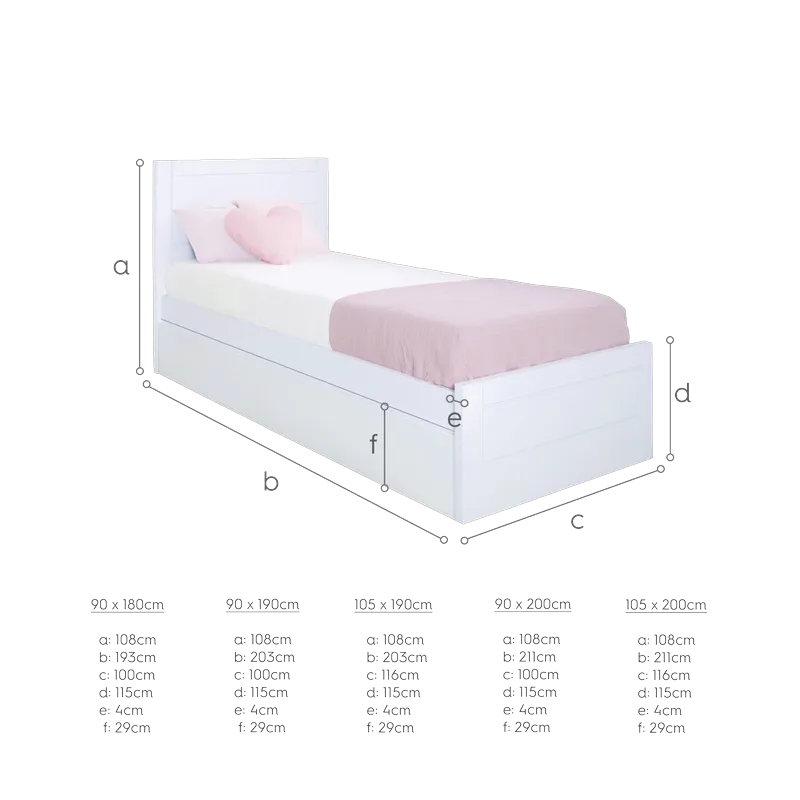 - Misura letto: 193 cm x 108 cm x 100 cm