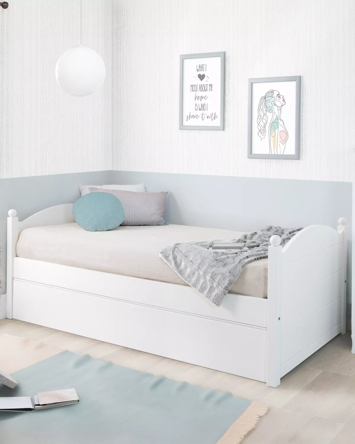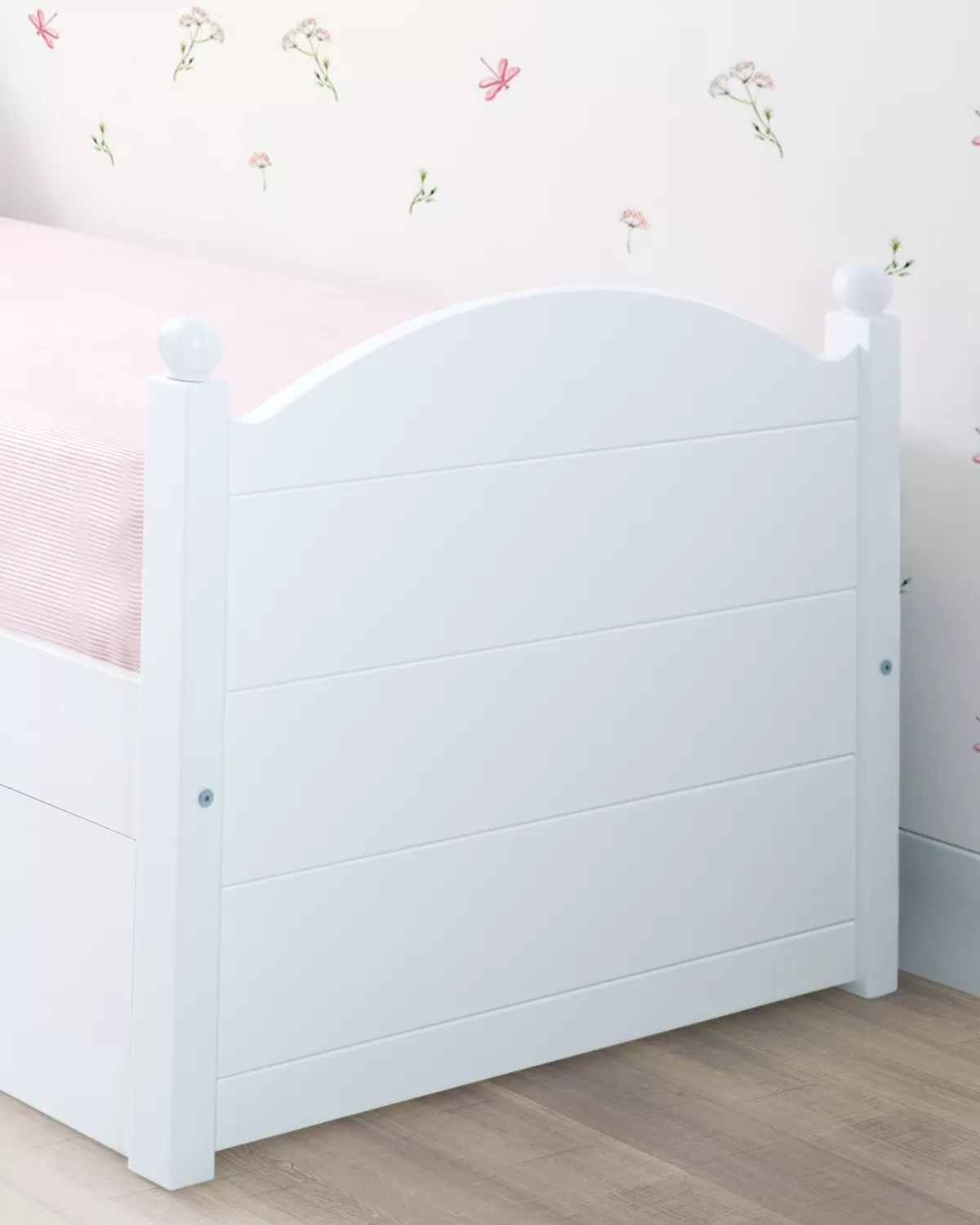 Un letto belissimo e molto dolce, perfetto per le camere da letto delle bambine, con un disegno moderno, avvolgente e linee armoniose, un letto perfetto per riempiere la camera di tenerezza. Fabbricato in legno di pino e MDF, materiale di gran qualità, resistenza e durabilità, essendo sicuramente una delle migliori opzioni per quelli che vogliano un mobile per tanti anni. Inoltre alla bellezza e la decorazione romantica e delicata questo letto è anche molto funzionale perchè il letto estraibile è molto facile da utilizzare scorrendo soavente sulla terra; i suoi piedi pieghevoli cadono gentilmente appena si solleva un pò il peso del letto in modo che non è necessario nessun movimento forzoso o difficile.