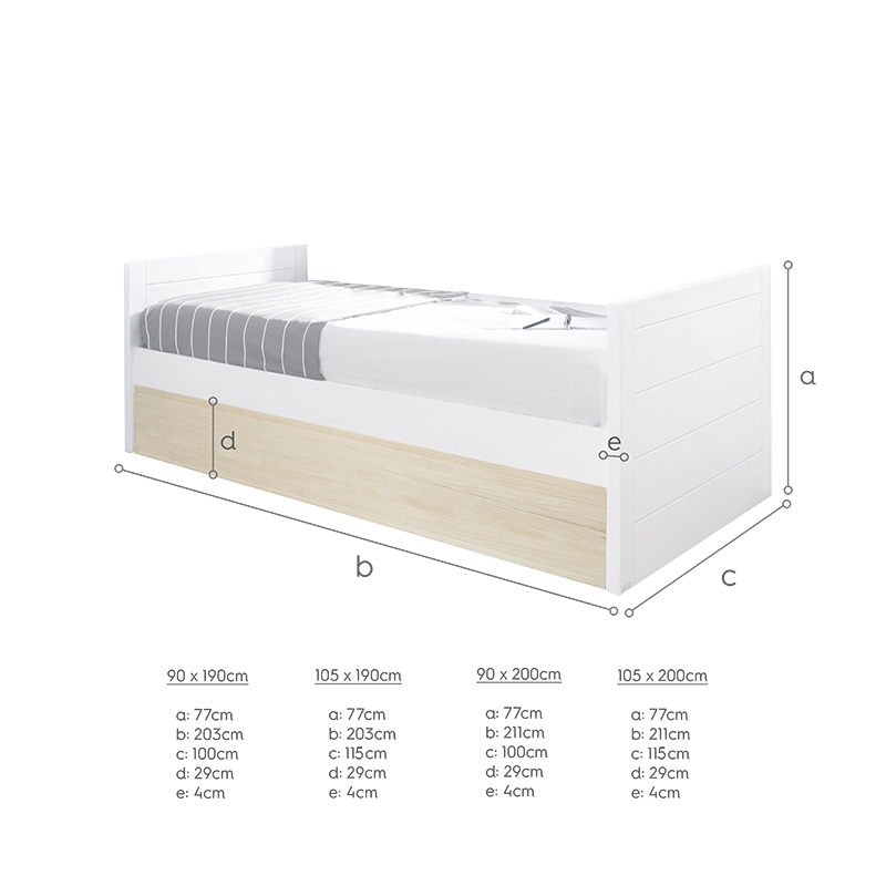 - Misura letto: 203 cm x 115 cm x 77 cm