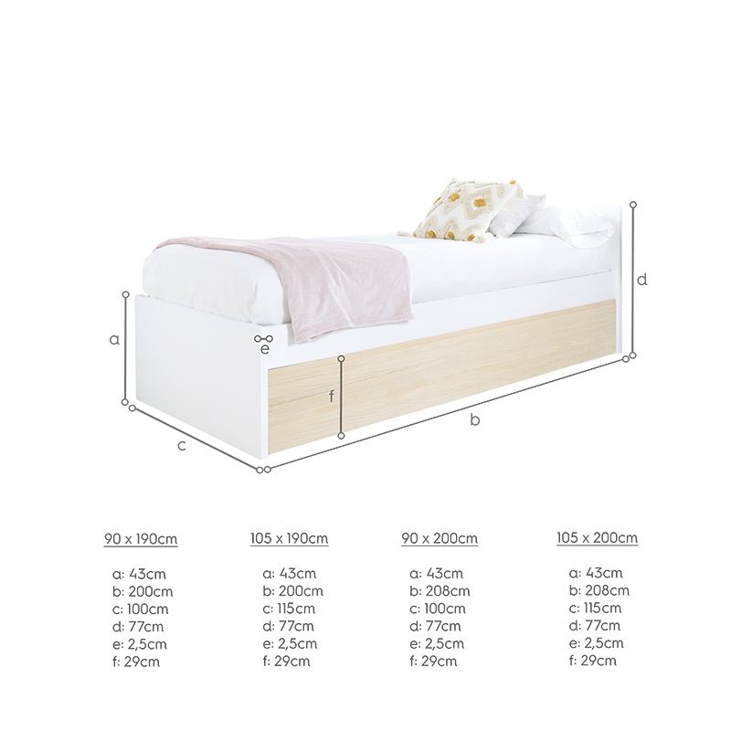 - Misura letto: 208 cm x 100 cm x 76 cm