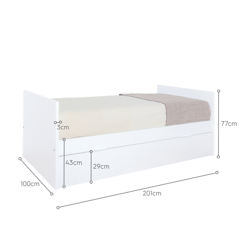 - Misura letto: 201 cm x 100 cm x 77 cm