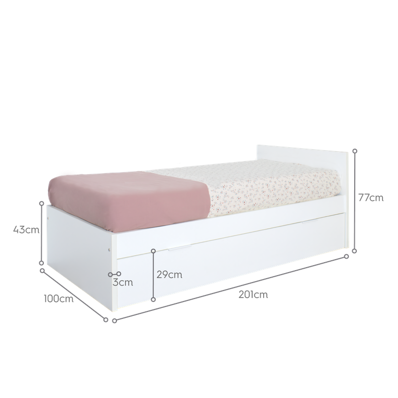- Misura letto: 201 cm x 100 cm x 77 cm