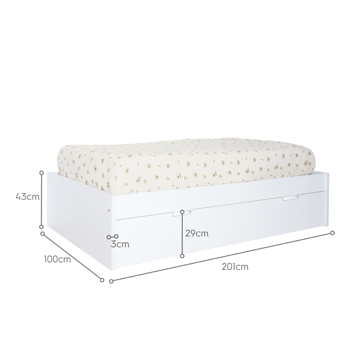 Il nostro letto estraibile in laminato bianco 90x190 basso con pediera e testiera bassa è una soluzione versatile e funzionale progettata per soddisfare le esigenze delle famiglie moderne.