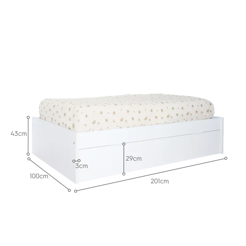 - Misura letto: 201 cm x 100 cm x 43 cm