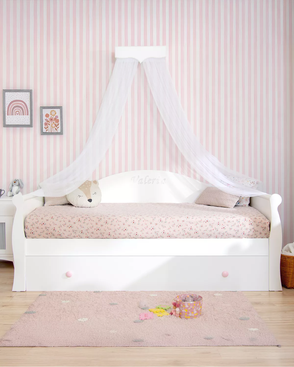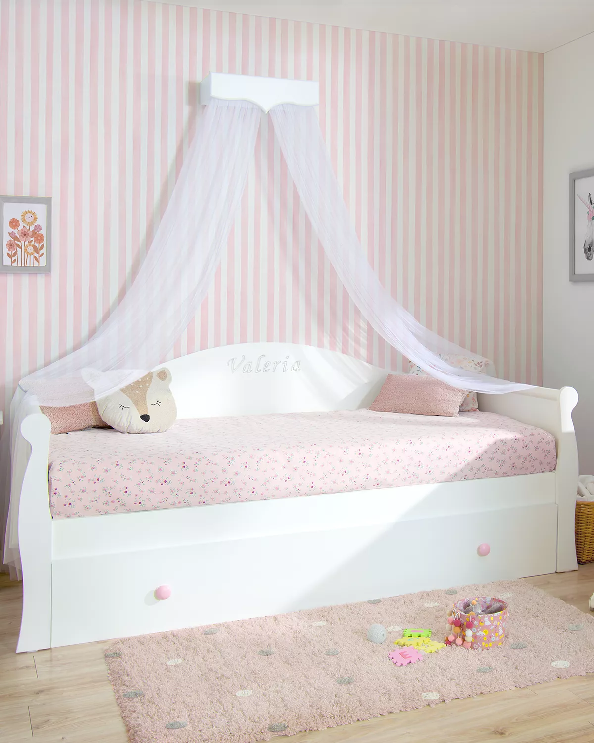 Letto per bambine estraibile Gondola è un letto bellissimo e molto conveniente, con la funzione estraibile vi darà molto più spazio e comodità. Oltre a questo bel disegno che ha, pieno di movimento, è anche molto funzionale. Il letto estraibile è molto facile da utilizzare scorrendo soavente sulla terra; i suoi piedi pieghevoli cadono gentilmente appena si solleva un pò il peso del letto in modo che non è necessario nessun movimento forzoso o difficile.