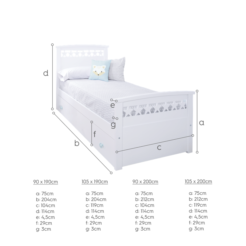 - Misura letto: 215 cm x 115 cm x 115 cm