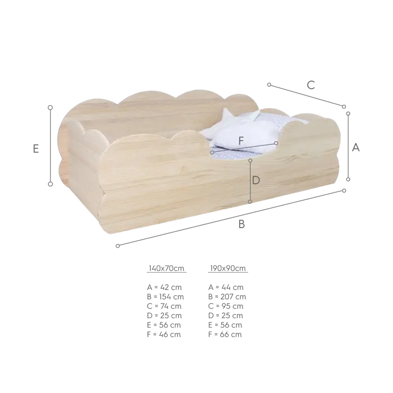 Misure letto: 154 cm lunghezza x 74 cm larghezza x 42 cm altezza