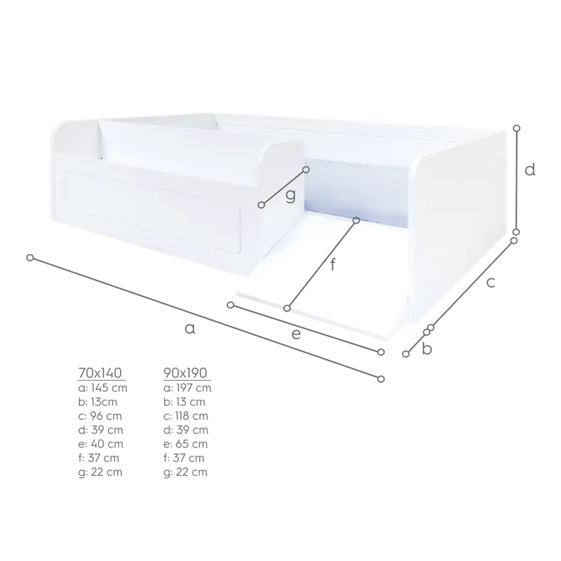 - Letto 90 x 190 cm dai 18 mesi senza limite di età.