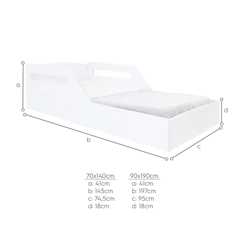 È perfetto per passare dal lettino al letto dei bambini in modo progressivo e sicuro. Con un design semplice e originale, la sua altezza consente ai piccoli di accedere al mobile in modo semplice e facile, aiutandoli a lavorare sulla coordinazione e sull'apprendimento.