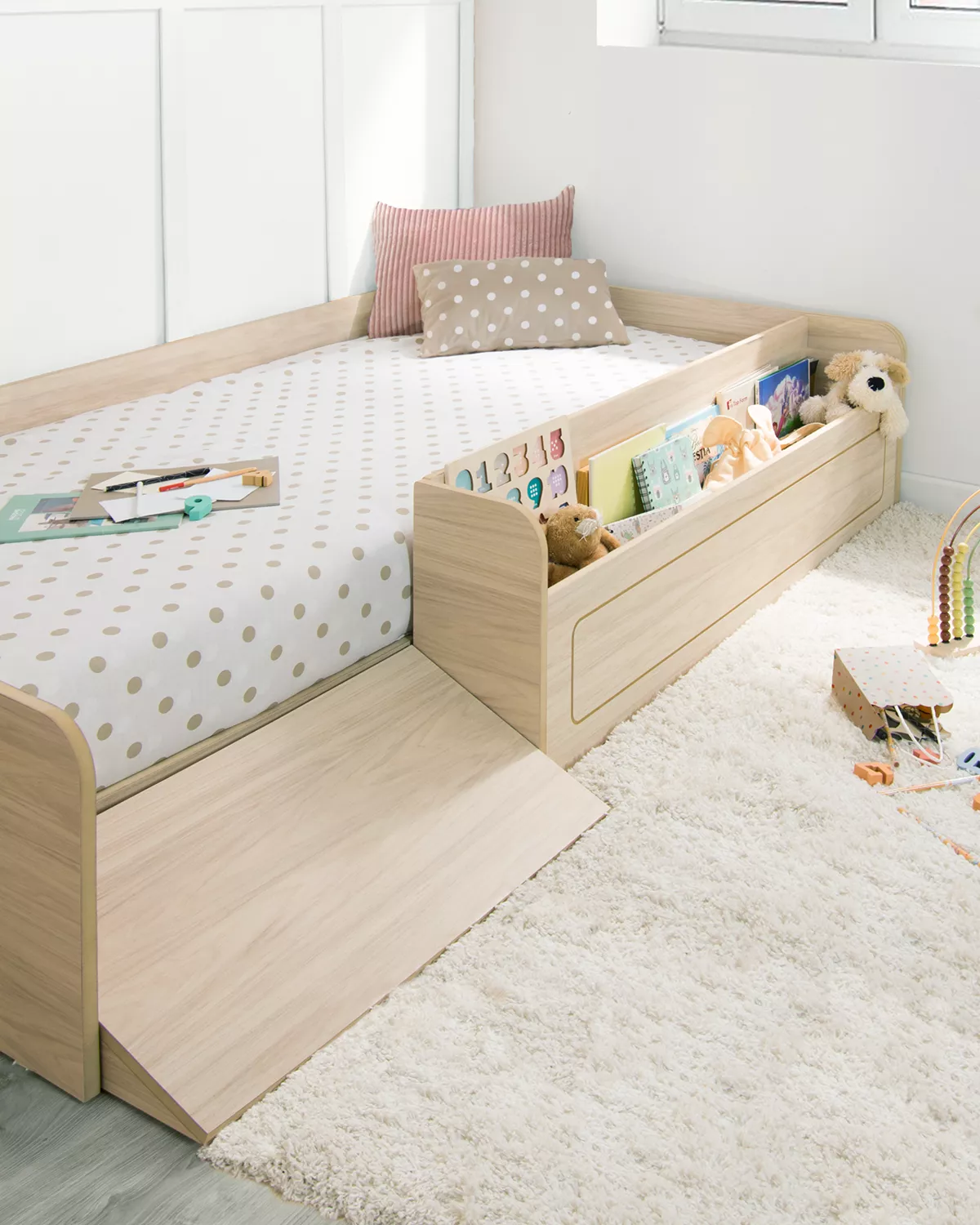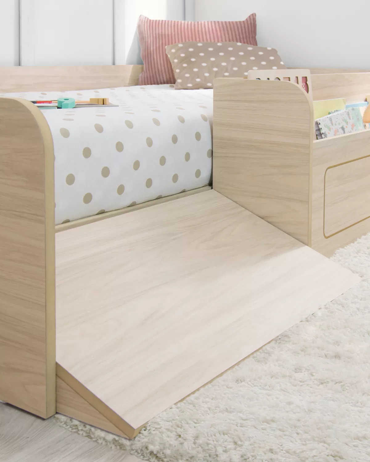 Rampa laterale integrata, ideale per far salire e scendere i bambini in autonomia a partire da 18 mesi.
