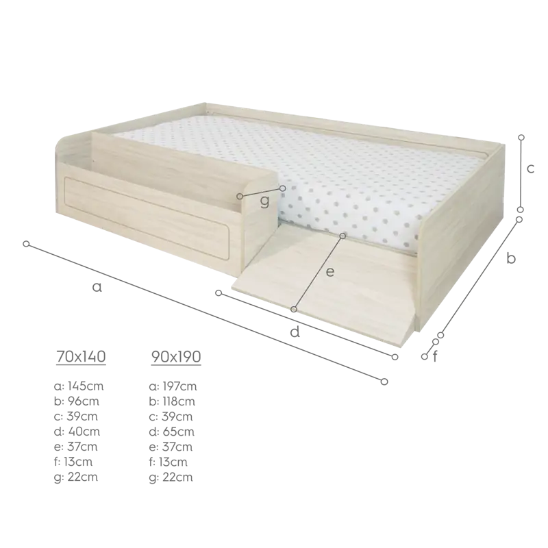 - Letto 90 x 190 cm dai 18 mesi senza limite di età.