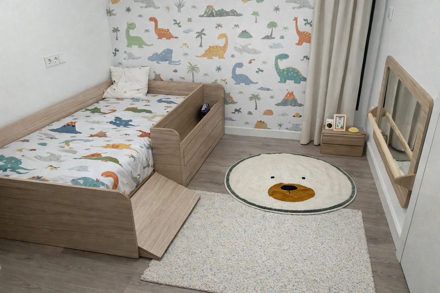 Il nostro letto Montessori con rampa e contenitore giochi è molto più di un semplice letto: è uno spazio dove giocare, riposare e imparare. Progettato per accompagnare il passaggio dalla culla con la massima sicurezza, include una rampa dolce per salire e scendere in autonomia e un pratico contenitore integrato per incentivare l’ordine e l’esplorazione.