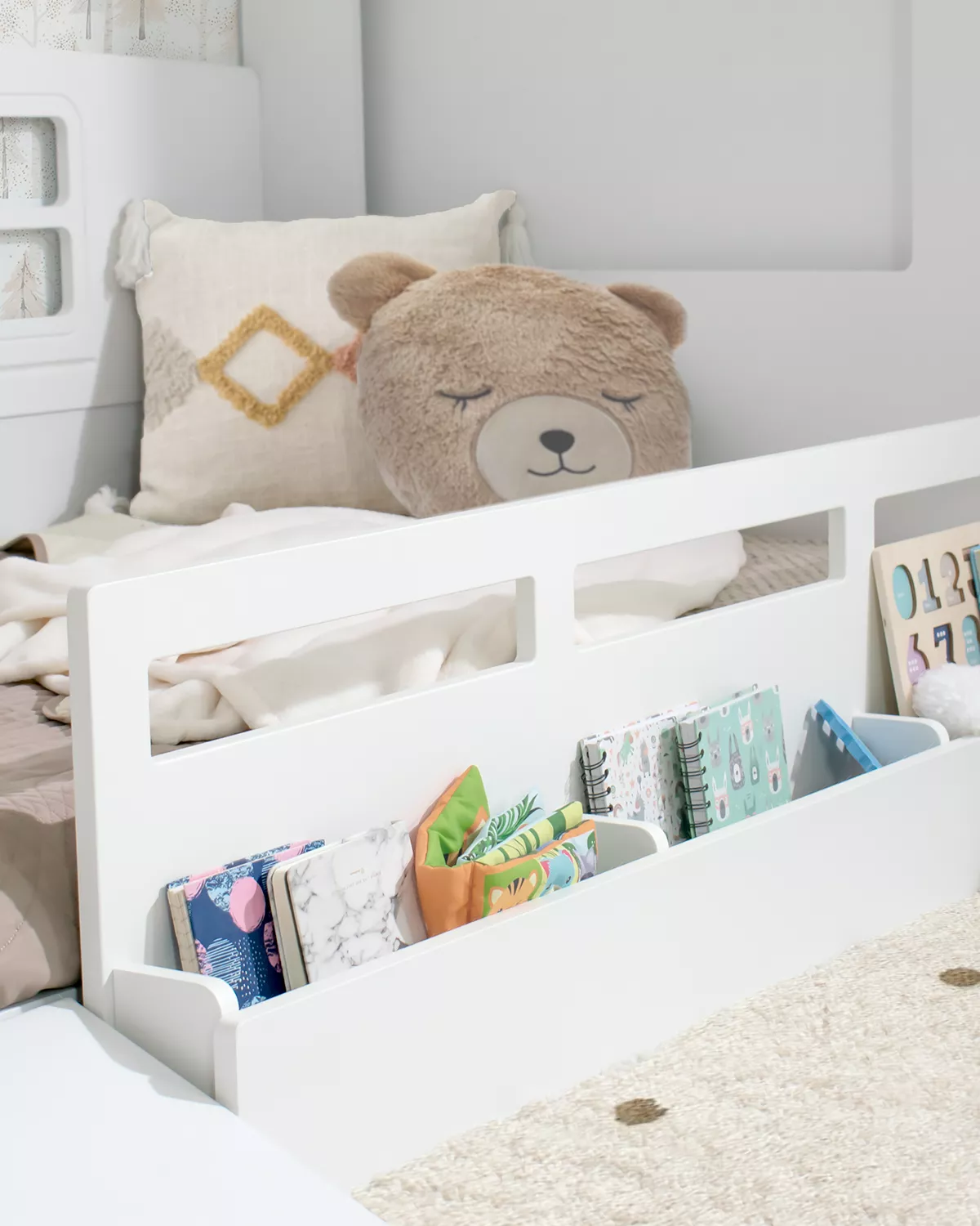 Portagiochi integrato: Dotato di una barriera che funge da organizzazione dei giocattoli, questo letto da gioco offre uno spazio a portata di mano dei bambini per i loro libri e giocattoli, mantenendo l'ordine e incoraggiando la loro indipendenza.