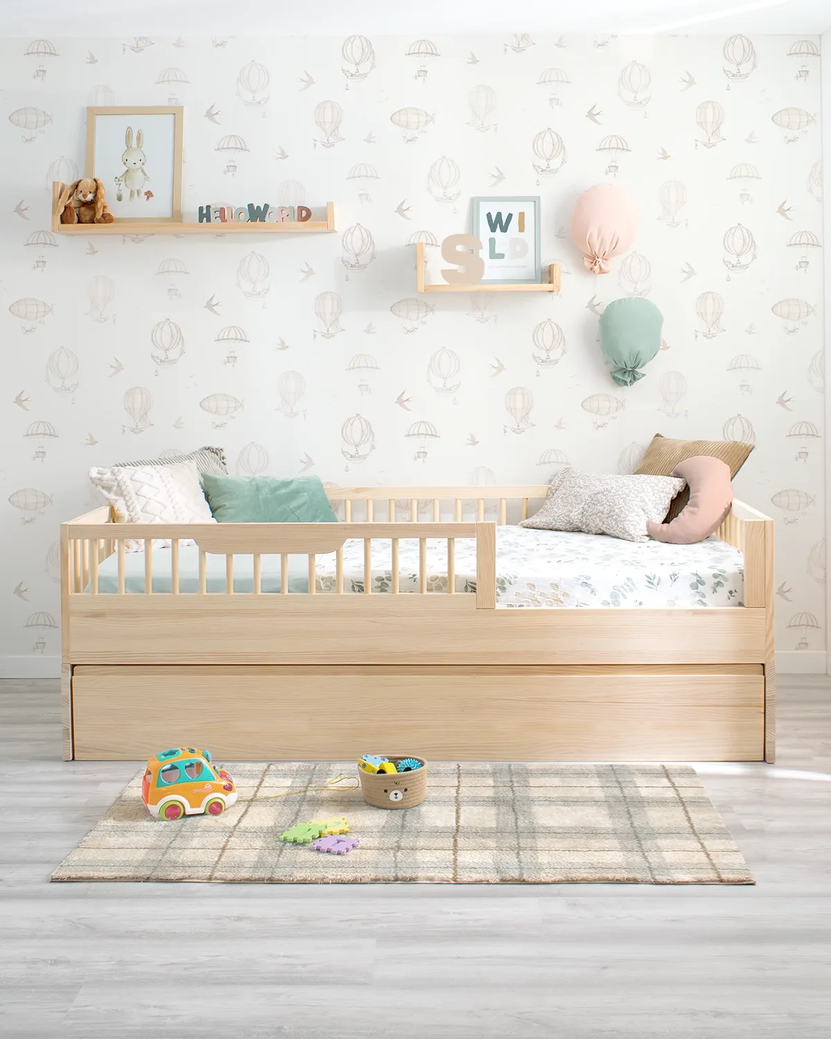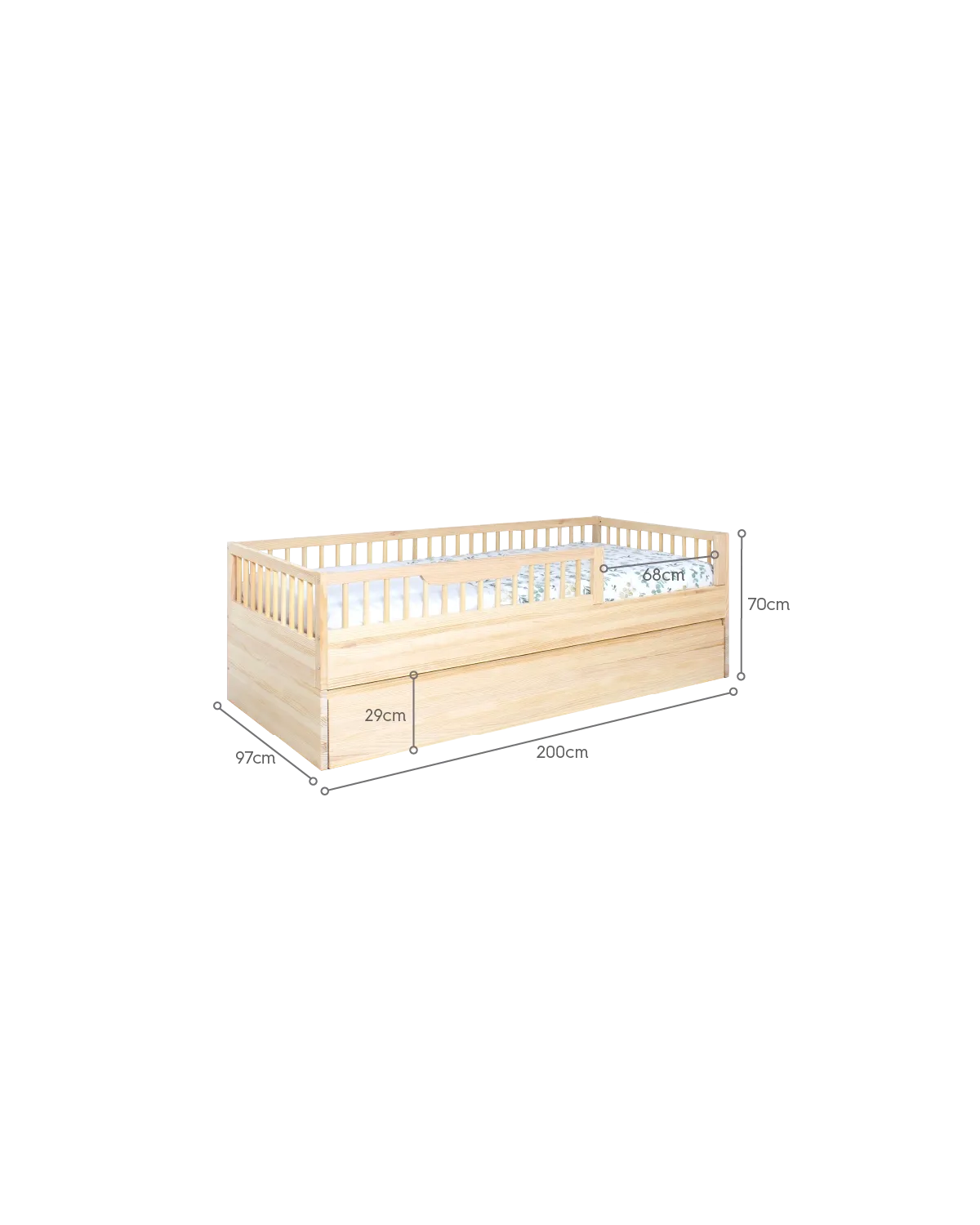 In questo PACCHETTO è incluso anche il kit evolutivo in legno naturale, che permette di sollevare il letto e aggiungere un letto inferiore oppure due cassetti. Potete configurare il pacchetto come preferite, per una soluzione unica e personalizzata.