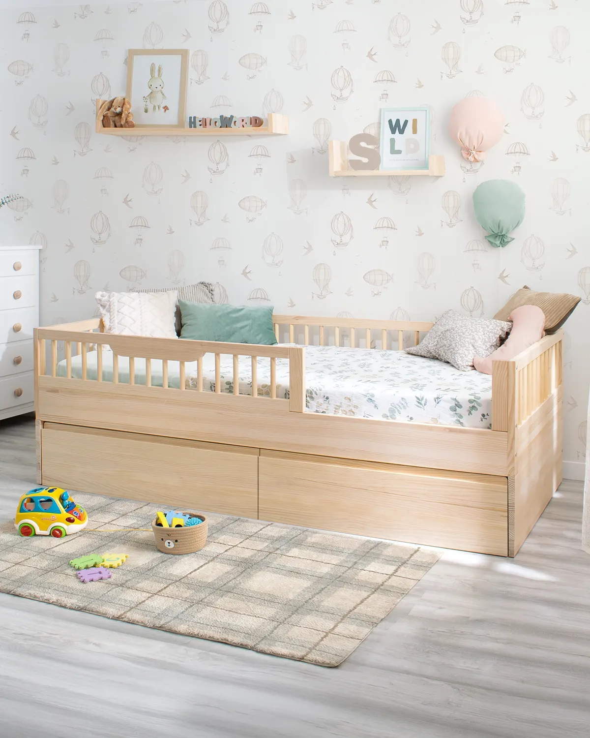 Il Letto Montessori Naturale SOFIA non è solo funzionale, ma dona anche un tocco elegante e moderno alla cameretta dei vostri bambini. Grazie al suo design evolutivo, questo letto con spondine rappresenta un investimento a lungo termine per lo sviluppo e la sicurezza dei più piccoli.