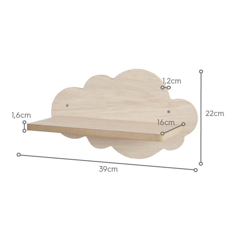 La mensola nuvola in legno è il complemento perfetto per una cameretta per bambini originale e diversa. I suoi dettagli a forma di nuvola e le sue dimensioni fanno sì che questo scaffale non svolga semplicemente la funzione di mobile decorativo, ma offra anche utilità e praticità. Ideale per libri, giocattoli, cornici per foto, ecc.