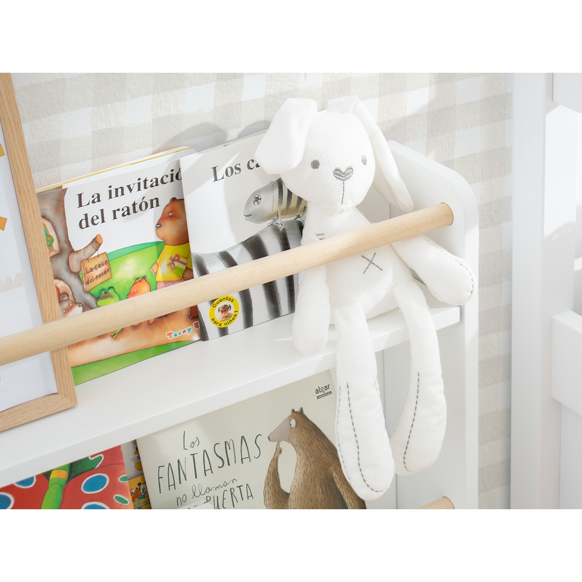 La libreria per bambini Montessori è una libreria originale con una fantastica finitura laccata bianca con dettagli in legno naturale, adatta all'altezza dei più piccoli della casa. Un mobile originale e facile da raggiugere che permette di creare un mondo pieno di avventure e fantasia. Perfetta per accogliere tutte le sue favole.