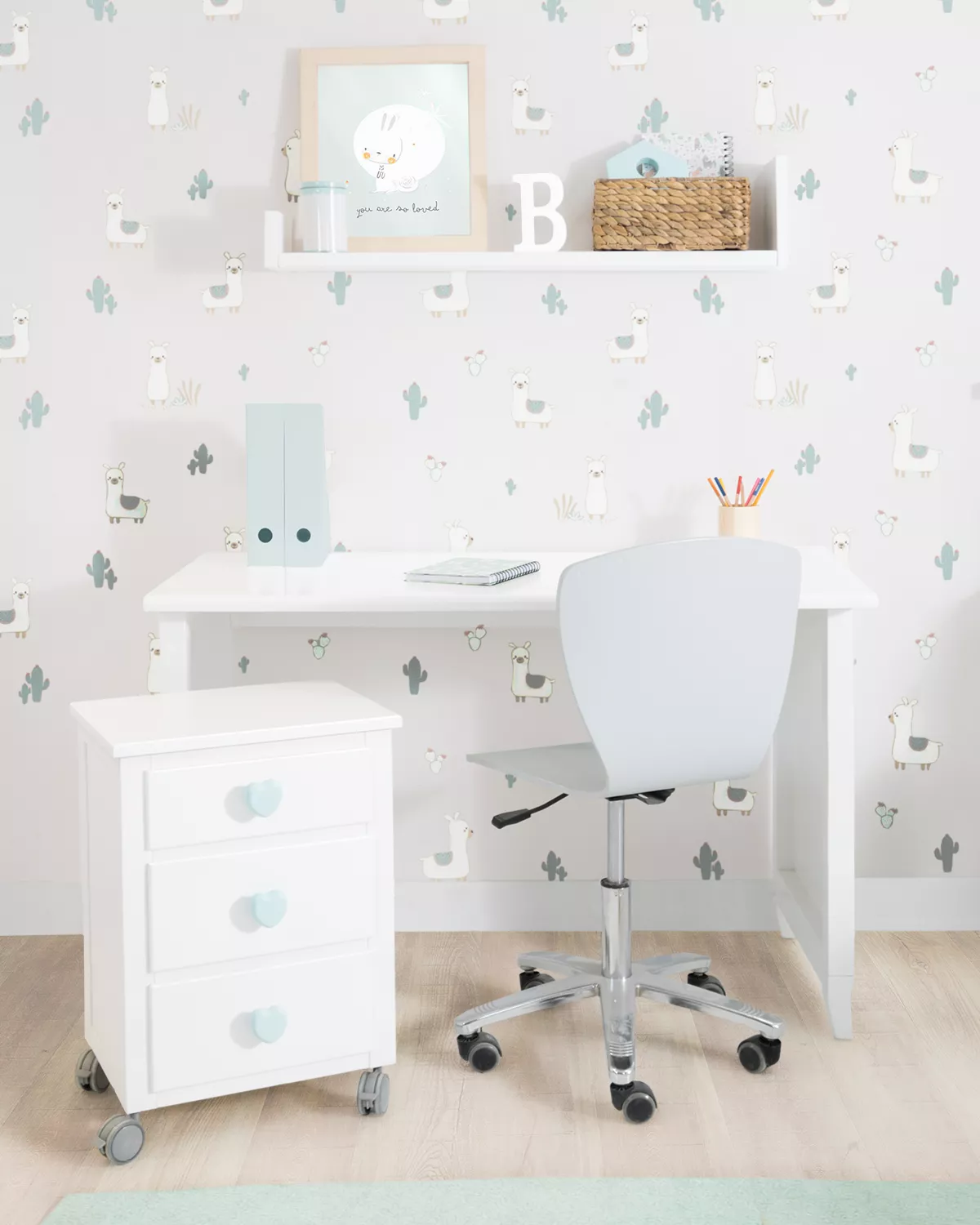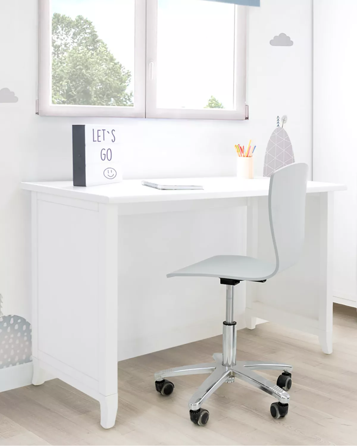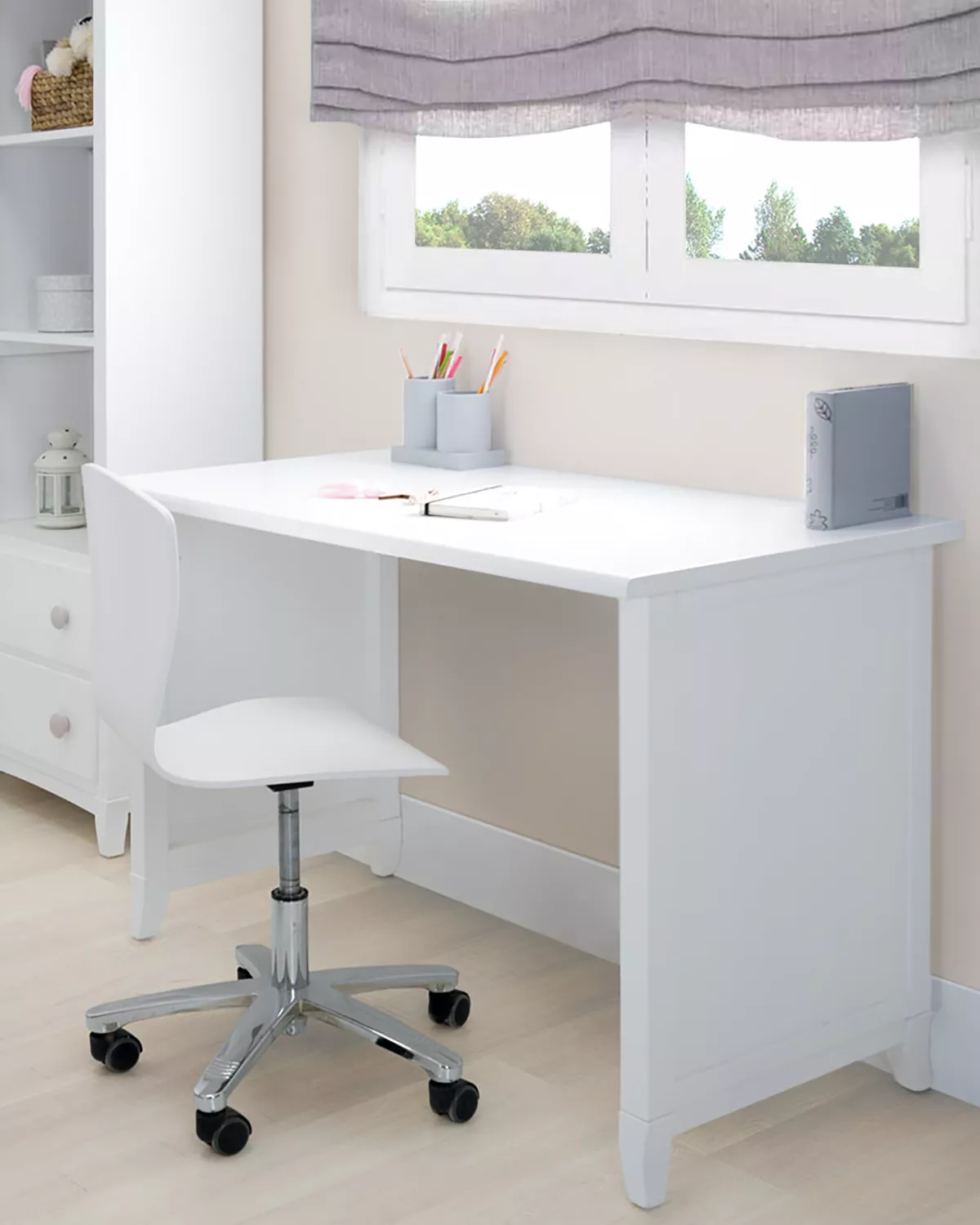 Scrivania Laccata Bianca: Grazie alla sua laccatura bianca, questa scrivania non solo ha un aspetto moderno e pulito, ma aiuta anche i bambini a rimanere concentrati sulla loro zona studio.