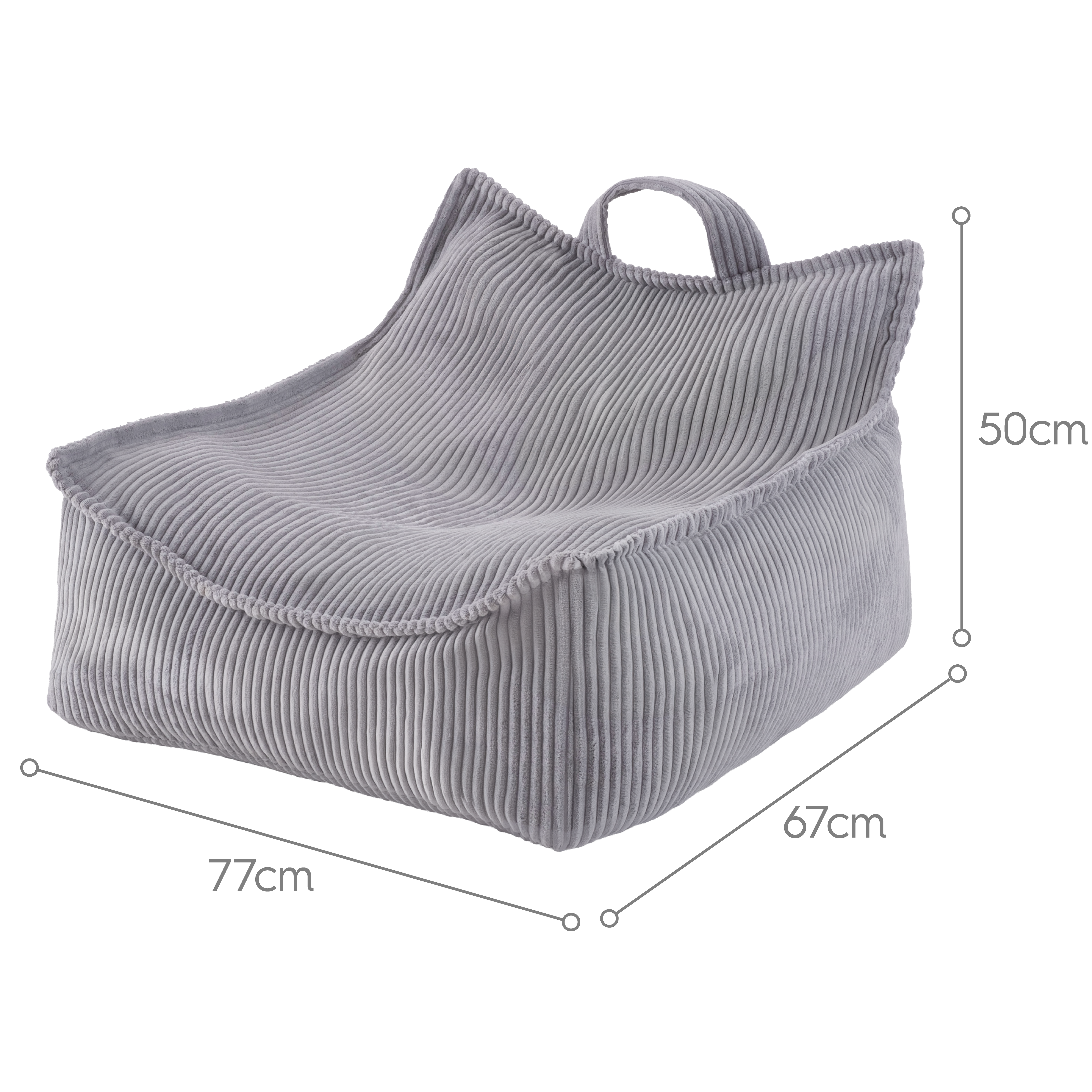 Un pouf poltrona grigio per bambini dal design originale e morbido. L’elemento decorativo essenziale per la cameretta dei più piccoli.