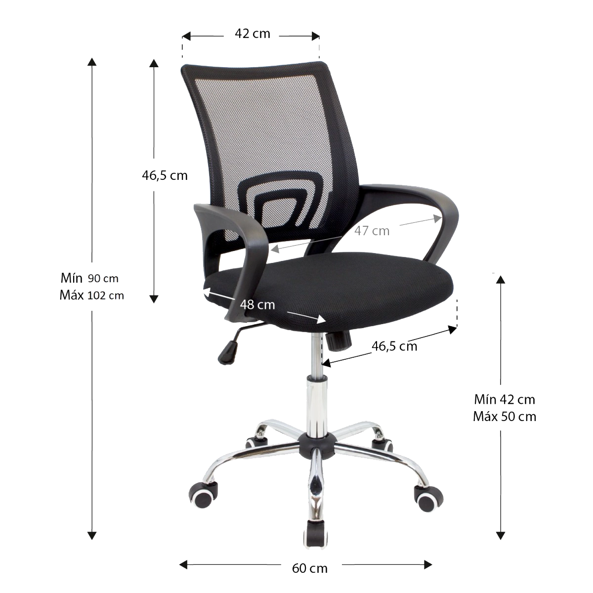 Una sedia da scrivania girevole a 360º, con braccioli e regolabile in altezza.