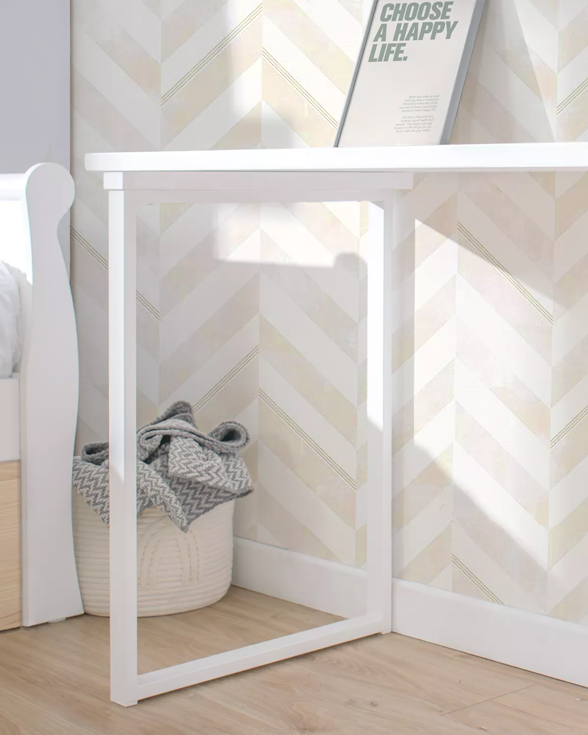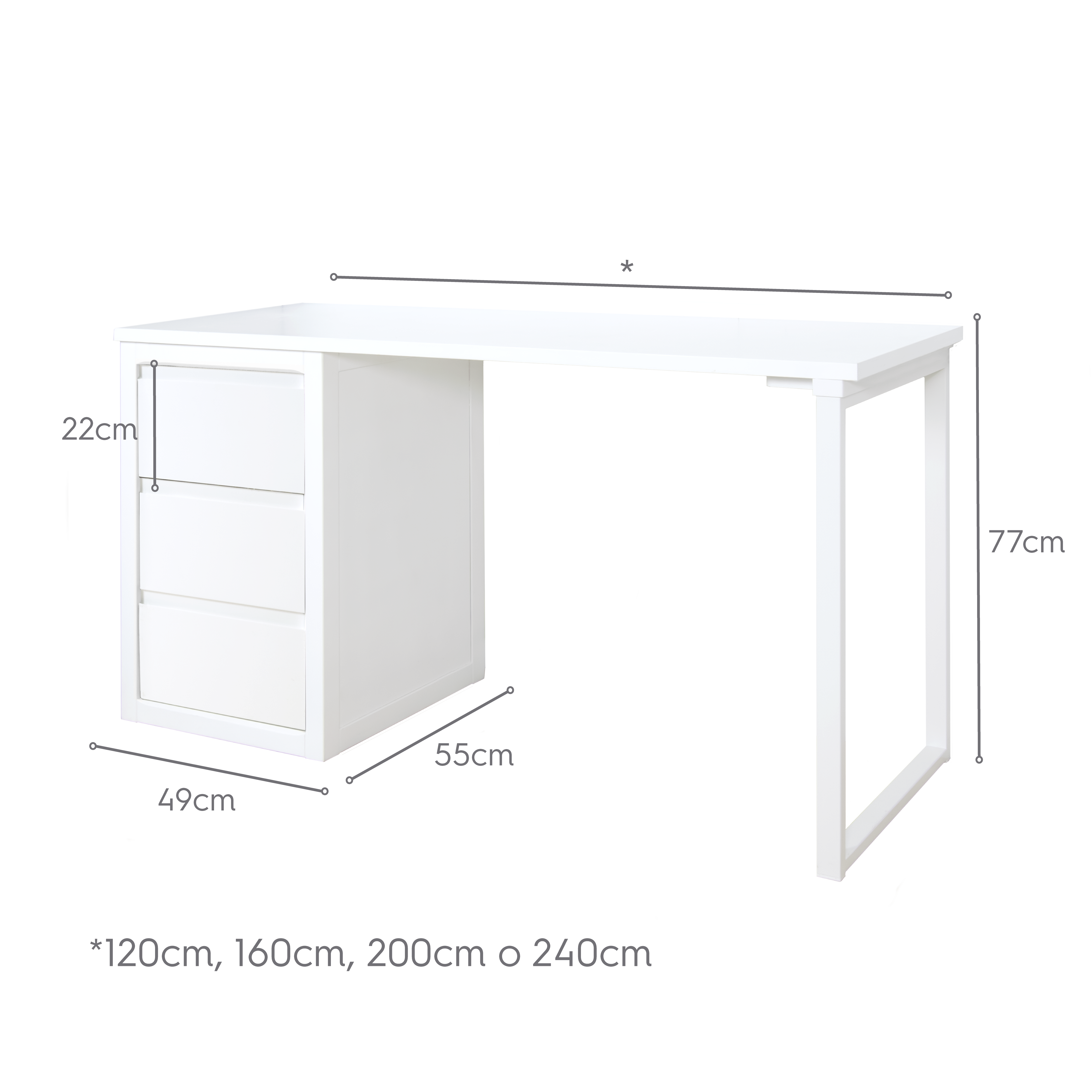 Durata garantita: realizzata in MDF di alta qualità e laccata in bianco, questa scrivania è robusta e durevole, garantendo longevità e versatilità in qualsiasi spazio.