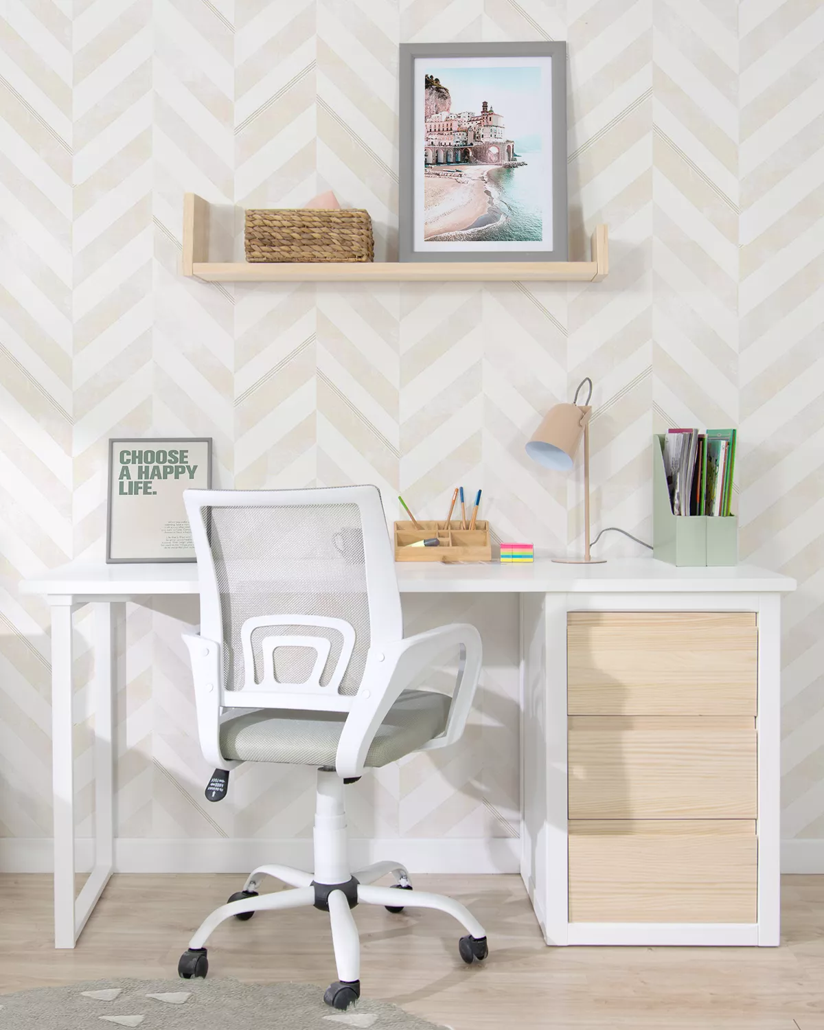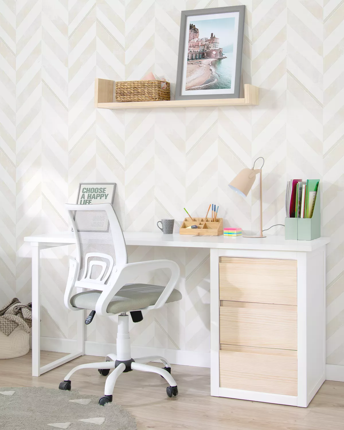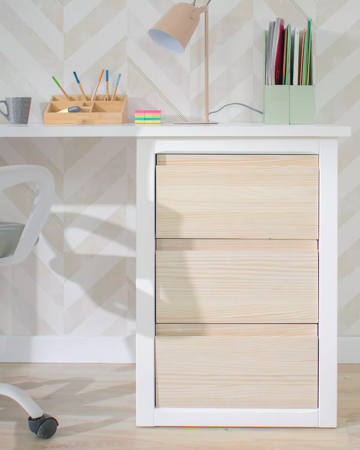 Scrivania Laccata Bianca: Grazie alla sua laccatura bianca, questa scrivania non solo ha un aspetto moderno e pulito, ma aiuta anche i bambini a rimanere concentrati sulla loro zona studio.