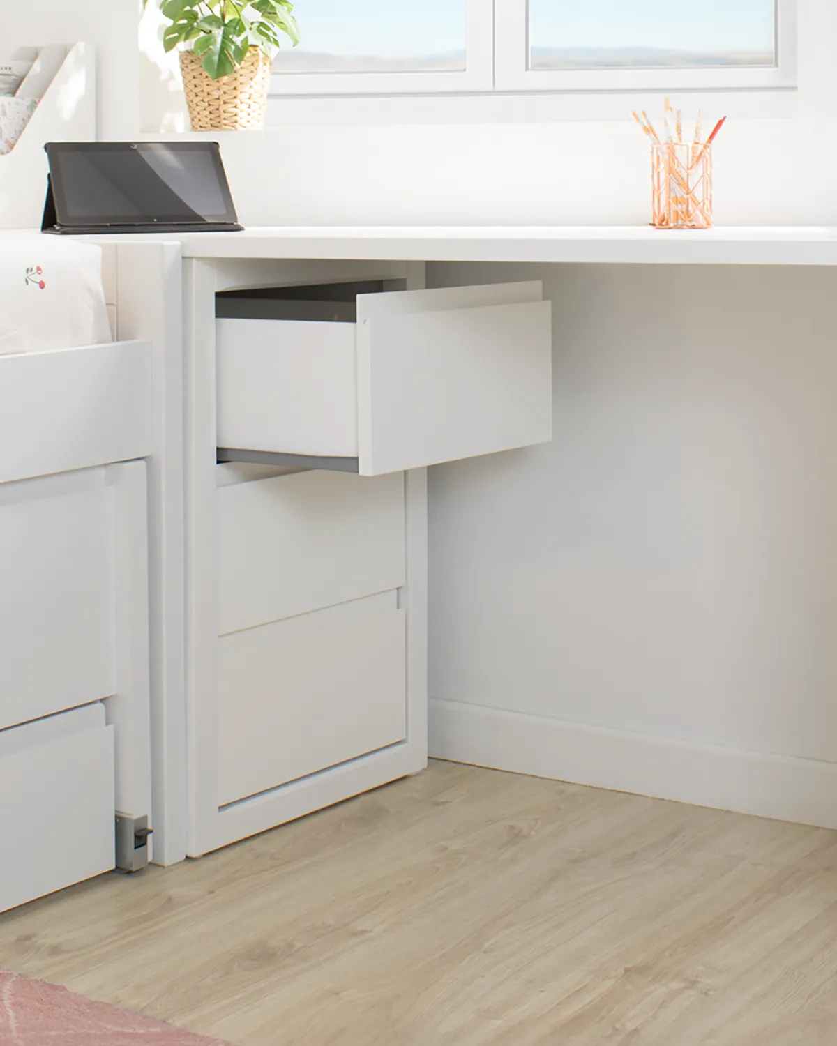 Scrivania Laccata Bianca: Grazie alla sua laccatura bianca, questa scrivania non solo ha un aspetto moderno e pulito, ma aiuta anche i bambini a rimanere concentrati sulla loro zona studio.