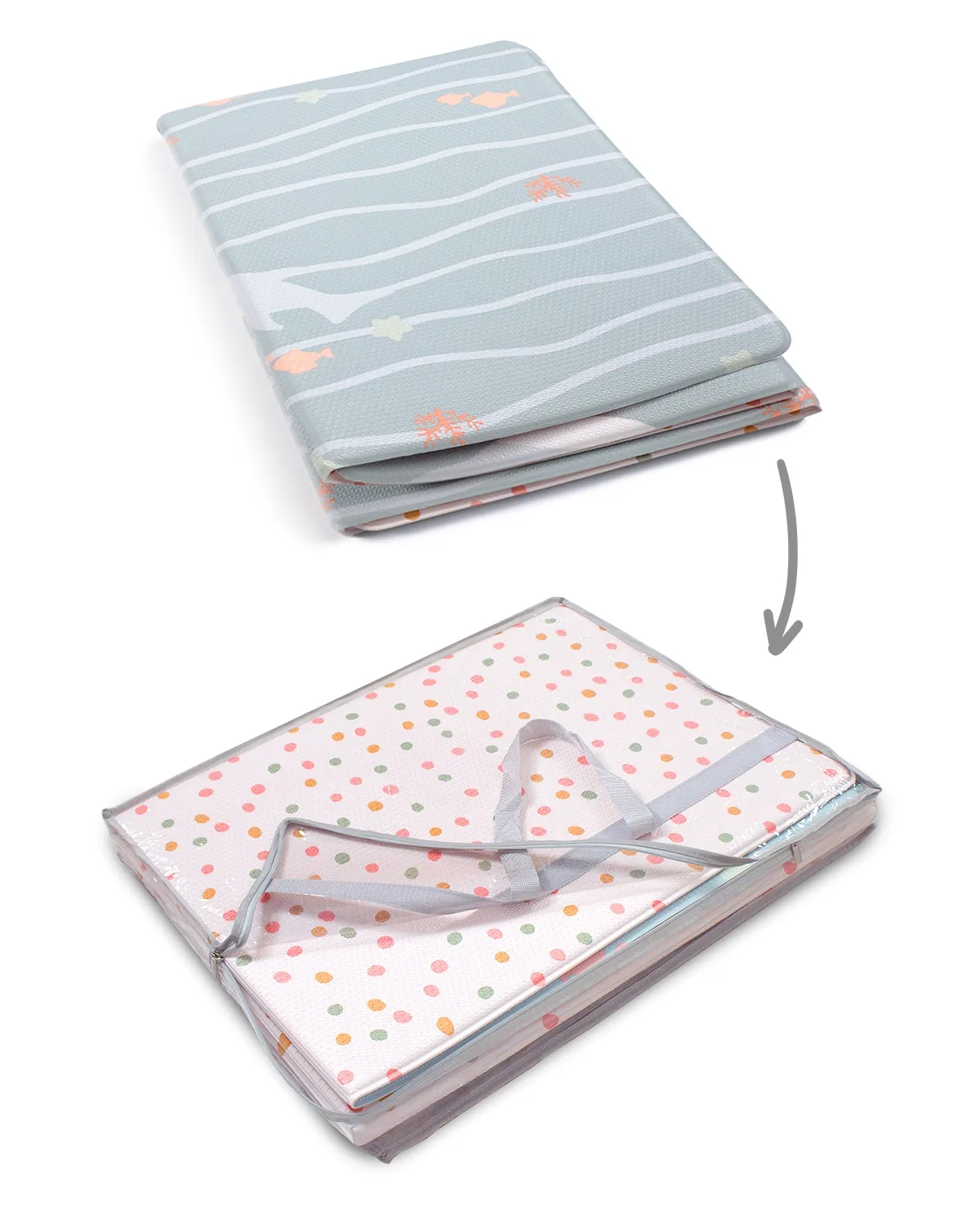 Questo tappeto pieghevole è perfetto sia per l’uso in casa sia da portare in viaggio: vacanze, fine settimana, visite dai nonni o dagli amici… ovunque il tuo piccolo voglia giocare!