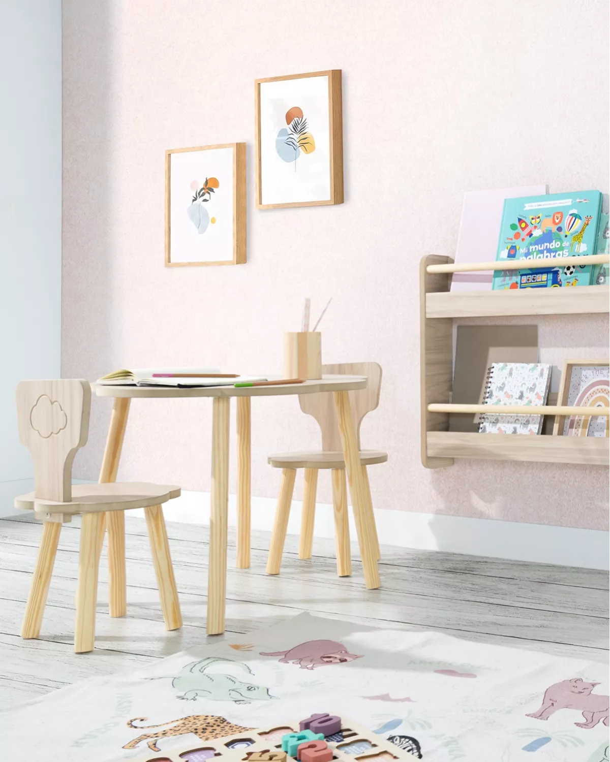 L’arredamento Montessori è stato creato seguendo la filosofia Montessori, che mira a supportare lo sviluppo e la crescita dei più piccoli. A tal fine abbiamo progettato questo set di tavolo e sedie a forma di nuvola per offrire loro uno spazio che li accompagni in questo continuo cambiamento.